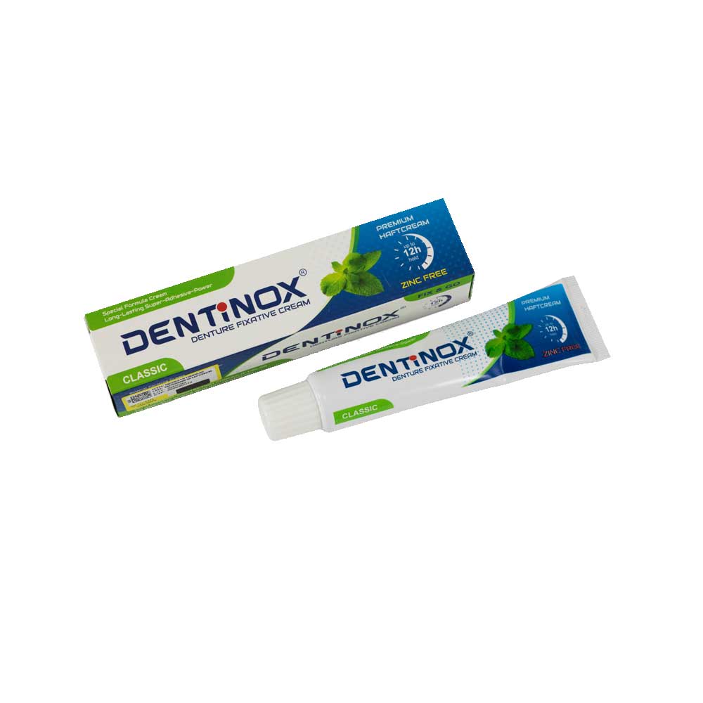 چسب دندان مصنوعی DENTINOX، جهت راحتی و آسایش بیشتر افرادی که دندان مصنوعی دارند طراحی شده است. خیلی از اوقات، هنگام جویدن غذا یا حتی آشامیدن، دندان مصنوعی حرکت میکند. در این شرایط، غذا خوردن برای سالمند بسیار سخت و کلافه کننده میشود. این موضوع معمولا در اوایل استفاده از دندان مصنوعی، یا برعکس، پس از گذشت مدت طولانی و تحلیل رفتن فک رخ میدهد.